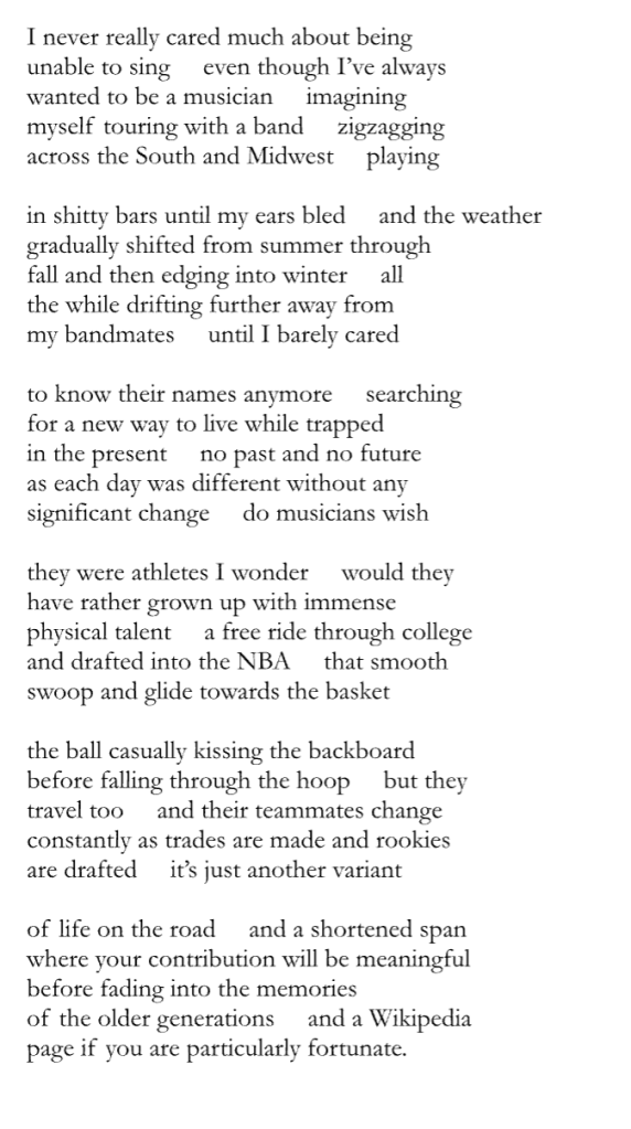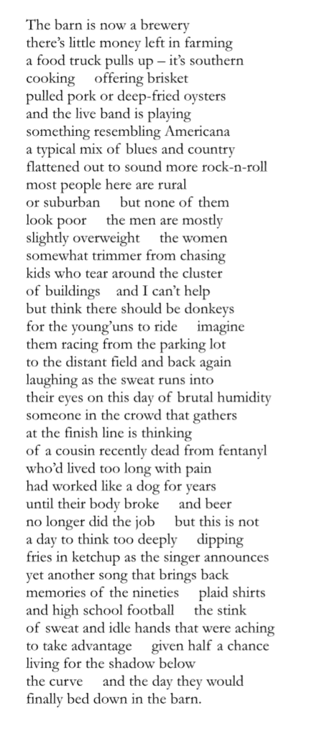 Paul Ilechko is a British American poet and occasional songwriter who lives with his partner in Lambertville, NJ. His work has appeared in many journals, including The Bennington Review, Bear Review, Atlanta Review, Permafrost, and Free State Review. His book “Fragmentation and Volta” was published in 2025 by Gnashing Teeth Publishing. He reads for Marrow Magazine.